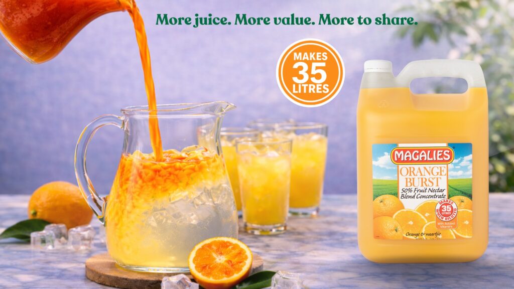 The Magalies 5-litre Fruit Burst nectar concentrate range offers vibrant fruit flavours designed for those who enjoy bold and refreshing drinks in larger volumes. Ideal for households, catering services, events and community gatherings, each bottle delivers excellent value and convenience.